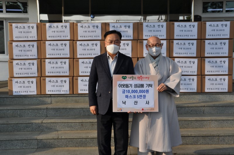 양양군청 이웃돕기 성금품 기탁 페이지 정보 작성자 최고관리자 댓글 0건 조회 335회 작성일 20-12-11 16:23 본문 사회복지법인 대한불교조계종 무산복지재단(이상장 금곡스님)은 12월 11일 양양군청에 이웃돕기 성금 1,000만원과 마스크 50,000장을 기탁하였습니다. 목록 이전글2020년 무산복지재단 꿈드림 장학사업 장학금 전달식 20.12.21 다음글무산복지재단 이사회 회의록 공개 20.12.03 댓글목록 댓글목록 등록된 댓글이 없습니다.