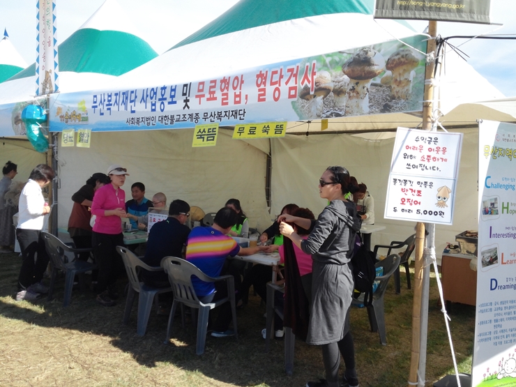 혈압, 당뇨체크, 쑥뜸 뜨기 등 송이축제를 찾은 관광객에게 무료로 제공하고 법인 홍보를 하였습니다.